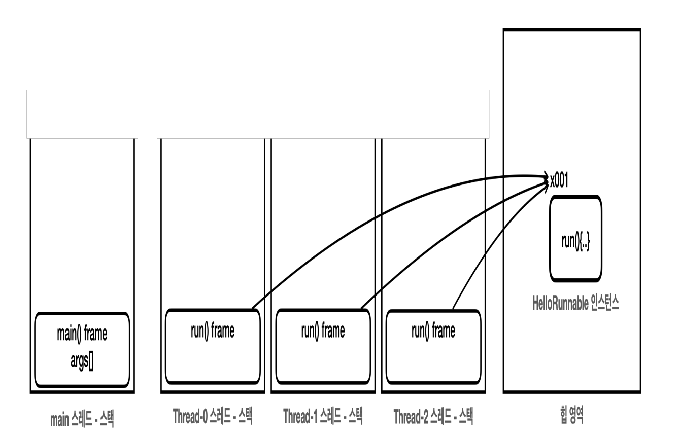 이 아닌 다른 스레드에 의해서 Stack이 만들어지고, 그 Stack 영역에 생성된 스레드가 하는 일이 수행된다.