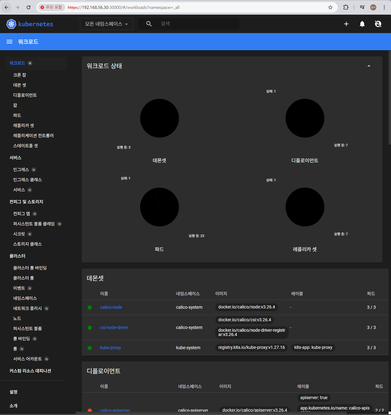 https://192.168.56.30:30000/#/login접속 - 안전하지 않음으로 이동 -> 토큰 체크 후 생략 클릭!