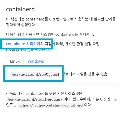별도의 설치 지침을 따르라는 링크만 있고, 설치 후 /etc/containerd/config.toml 파일이 있는지 확인을 하라고 한다.