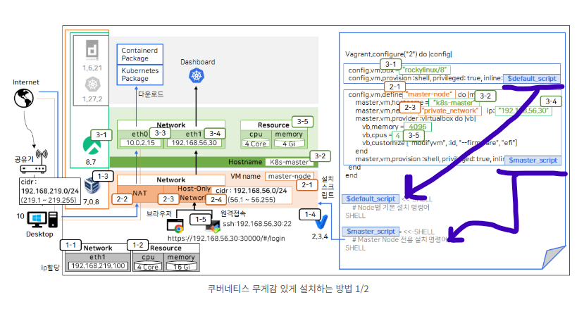 쿠버네티스 설치 내용은 위의 그림 중 표시한 script에서 찾아볼 수 있다.