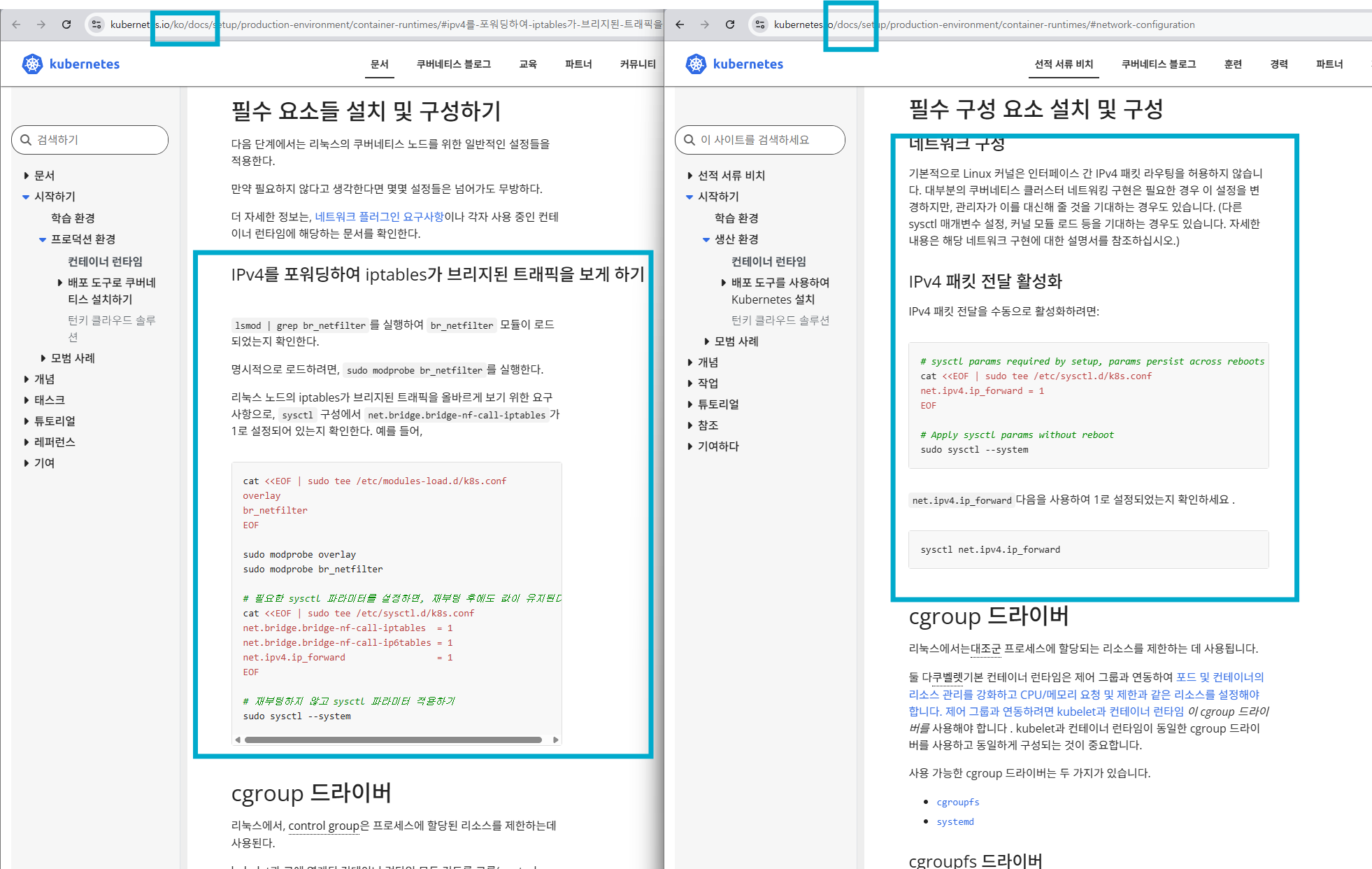 쿠버네티스와 컨테이너 런타임을 설치할 때 cgroup에는 두 가지 기술이 있는데,